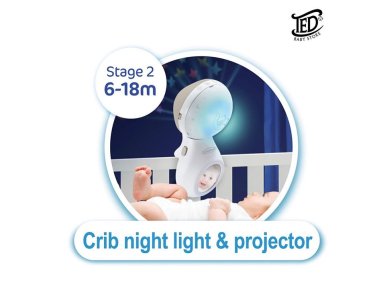 Developmental benefits: 3 cute detachable hanging characters that engage baby to aid in eye tracking; complete with mirror, music and projector and shut-off timer for falling asleep