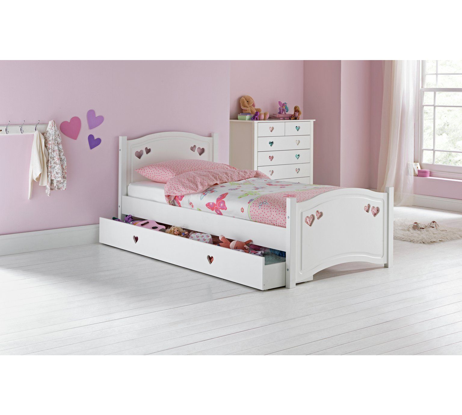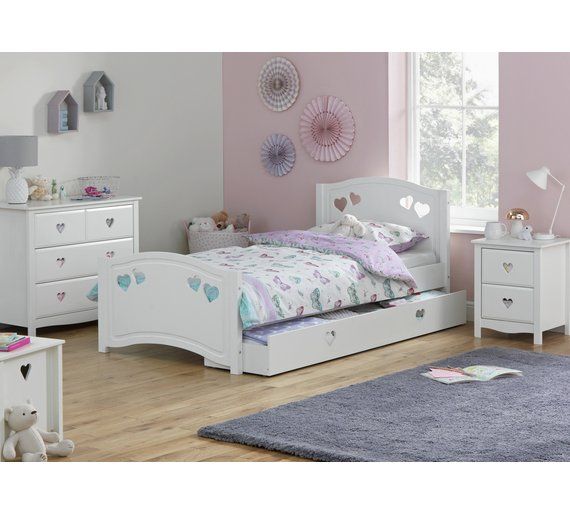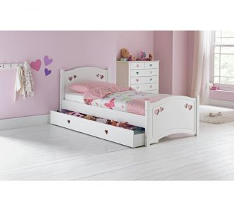 Create a relaxed bedroom setting for your little girl with the charming and sweet Mia collection. This gorgeous bed comes with a Silentnight kids mattress and offers a combination of graceful curves and dainty cut out hearts for a delightful style.