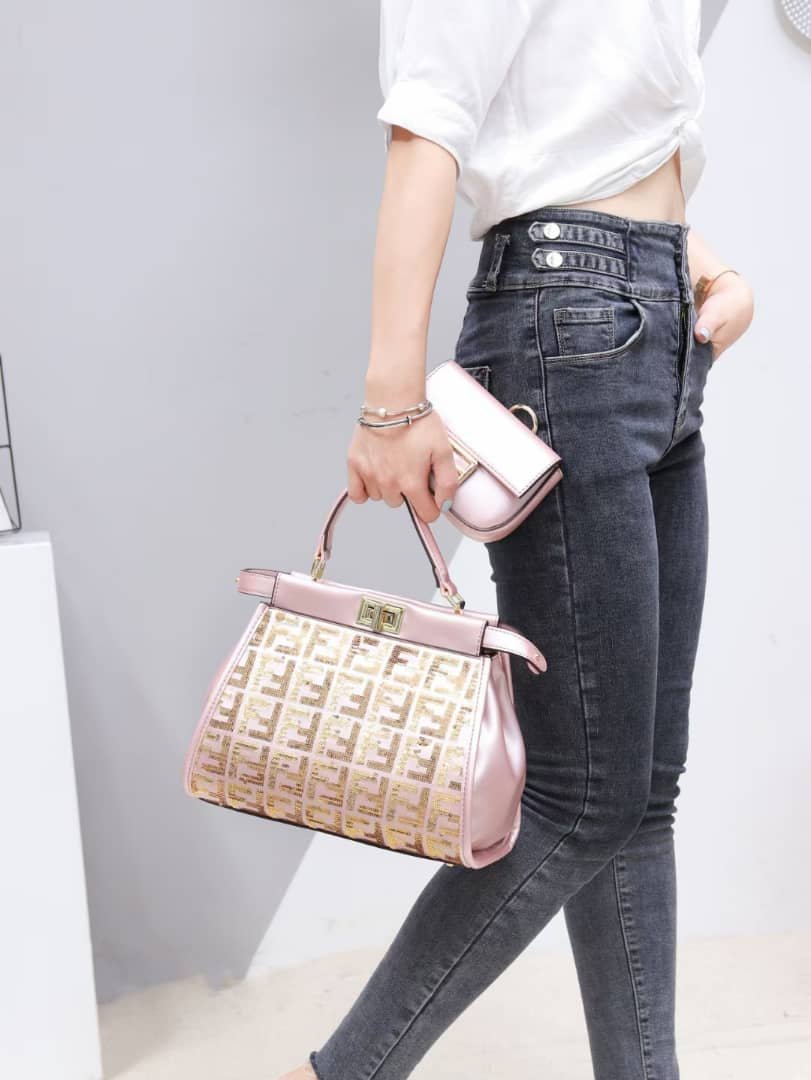 Cute pink designer bag with purse