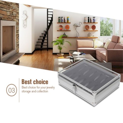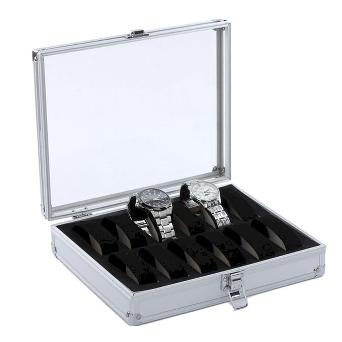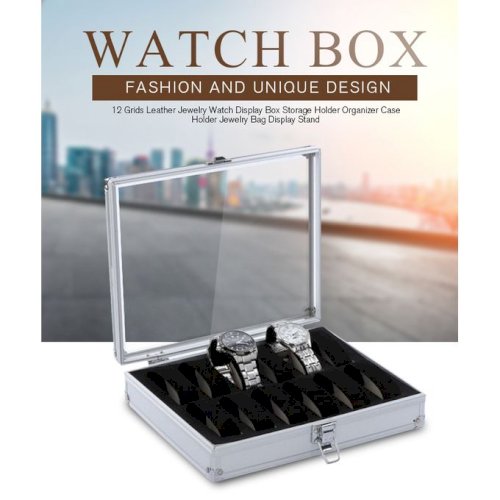 12 Grid Aluminium Watch Box Display Case Organizer Clear Top Jewelry Storage