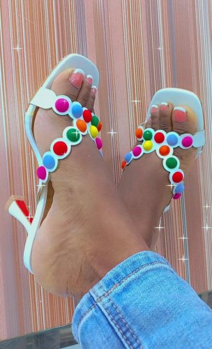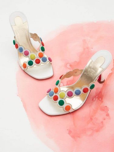 Designer Smarta 85 Leather Vibrant Suede Button Accents Dotted Mules