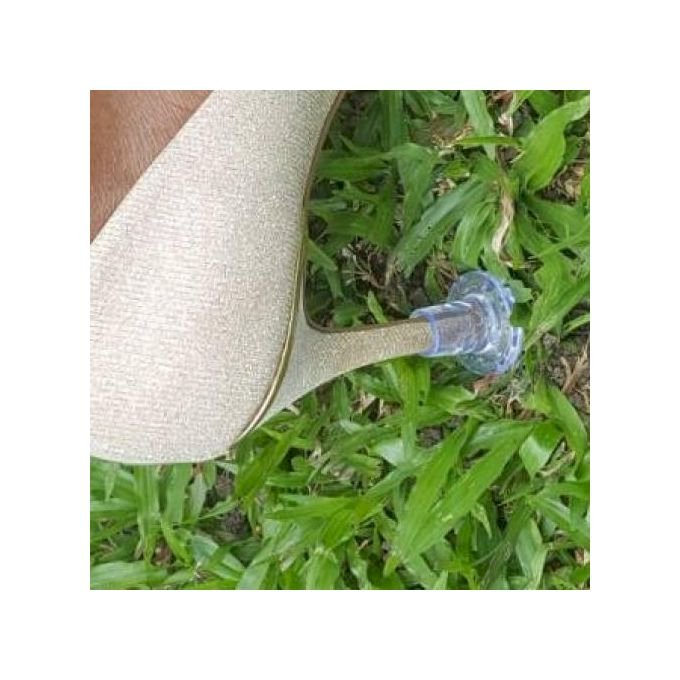 The Solemates High Heeler® is mechanically engineered heel protector. Featured on the Popular show, SHARK TANK, the heel protector prevents damage to heels and makes walking in grass possible without heels sinking into the grass. By increasing the surface area on the bottom of the heel (in a discreet and elegant way), the pressure is reduced and you can walk across ALL unsupportive or uneven surfaces with ease. The elegant design of the patented, hour-glass shape blends into your heels discretely.