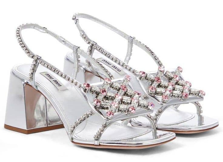 *Miumiu Ladies Square OpenToe Rhinestones Chunky Moderate Heel Slingback Shoes*