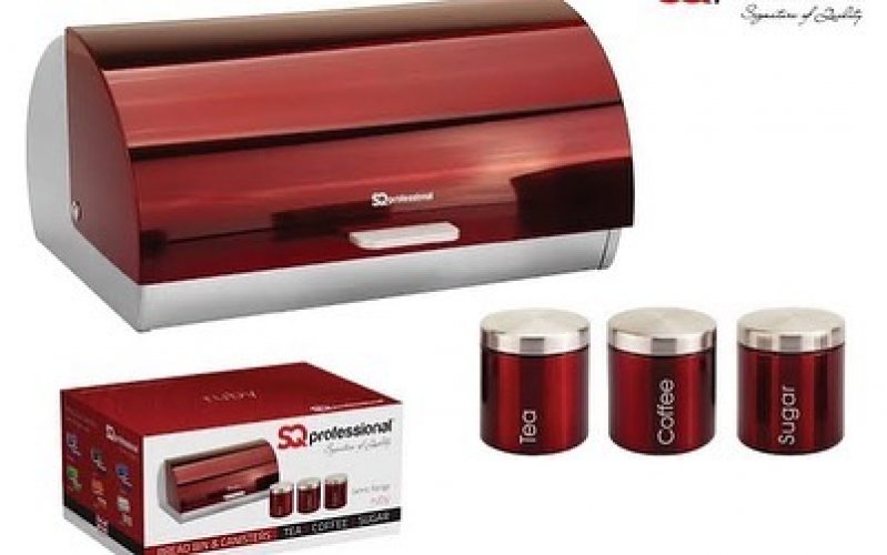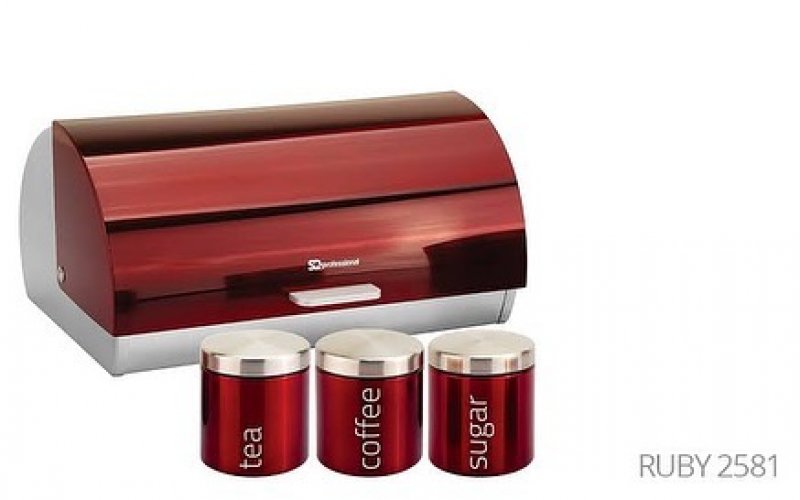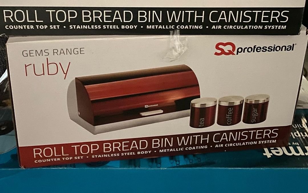 Roll top bread bin and matching tea, coffee, sugar canisters