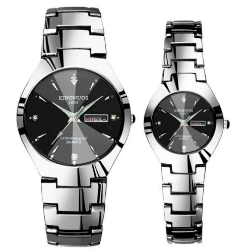 - 1 Pair Couple Watches Top Luxury Quartz Watches Date Week Stainless Steel Clock For Men Women Luminous Lover Wristwatch